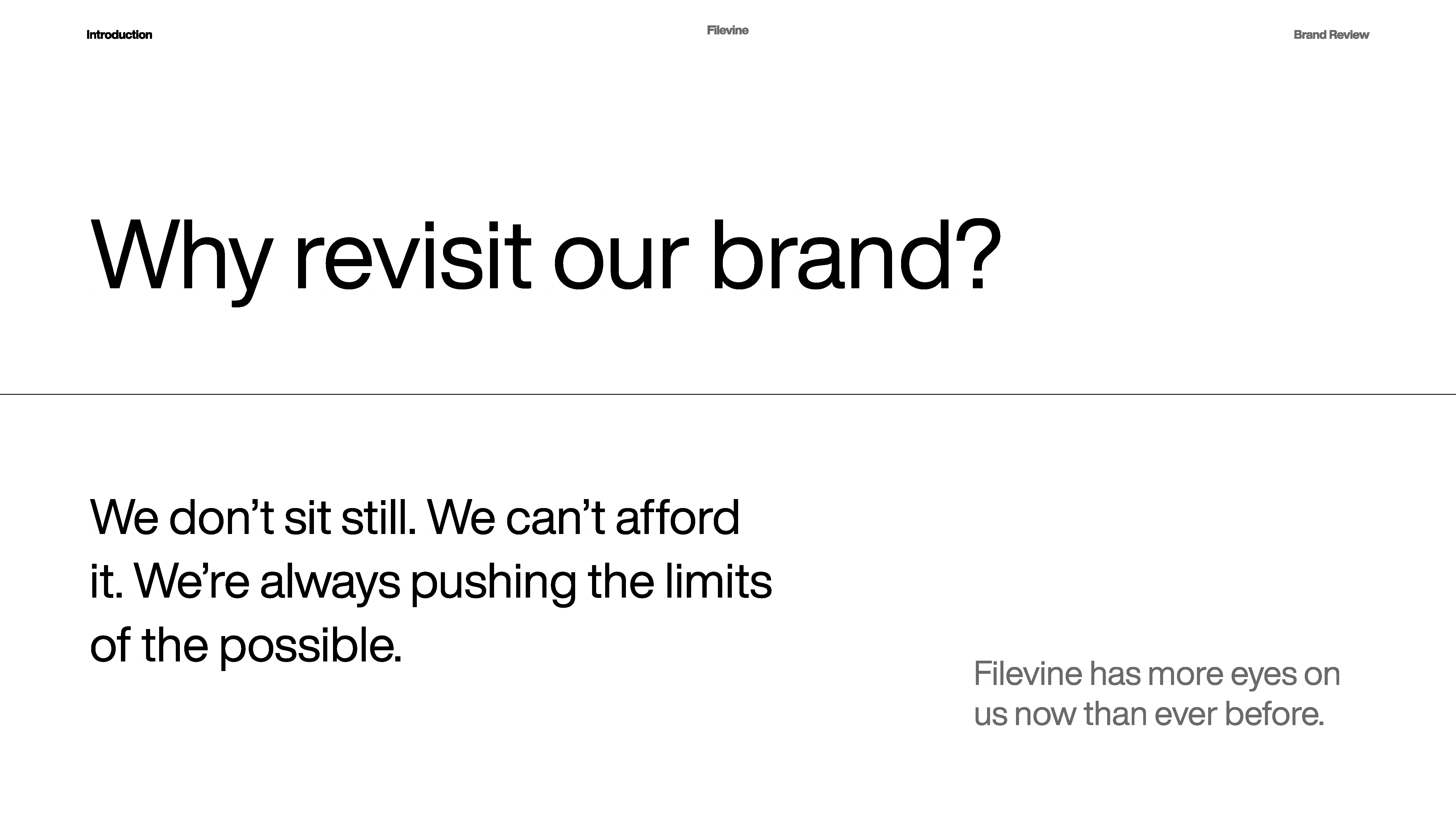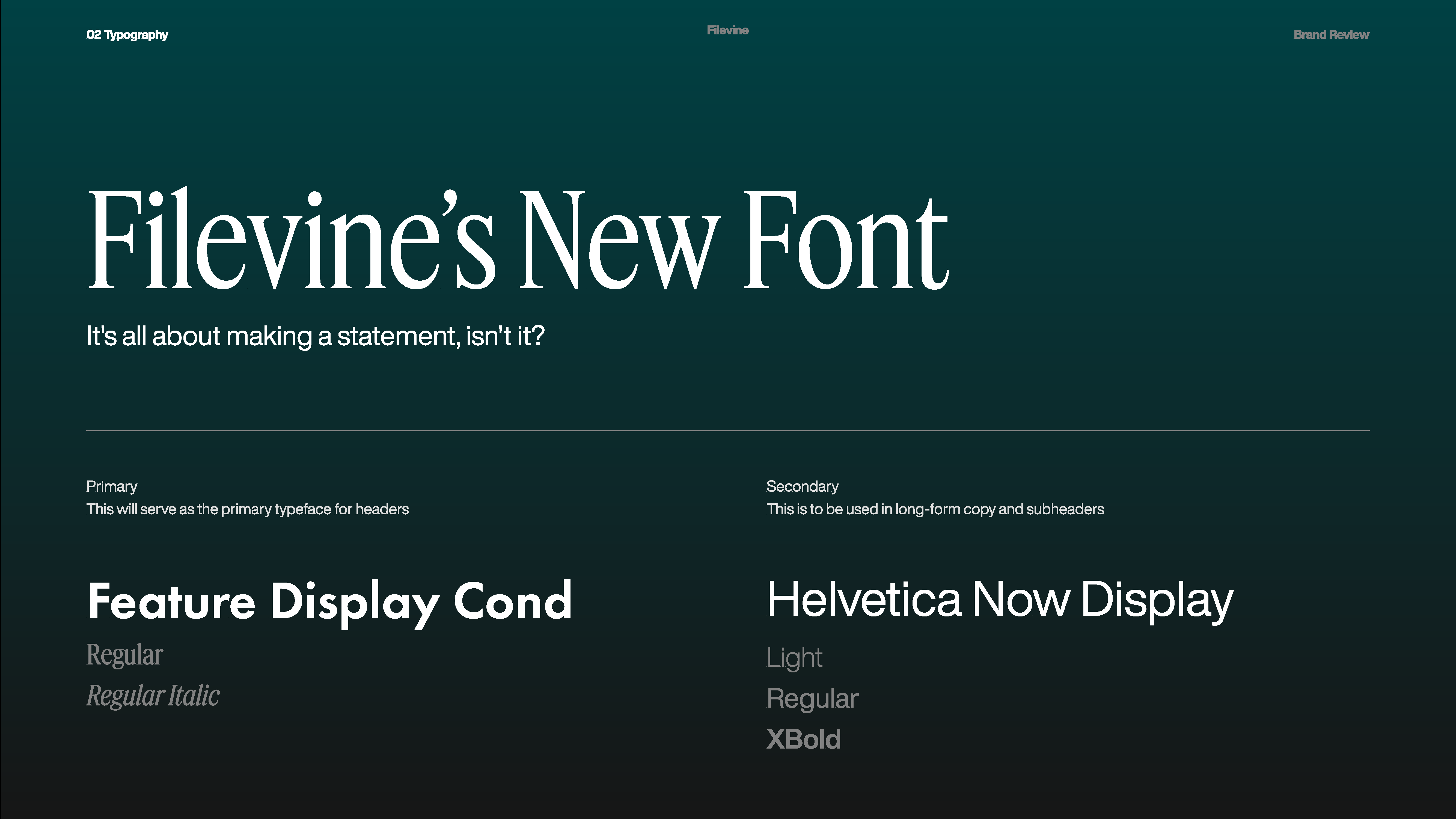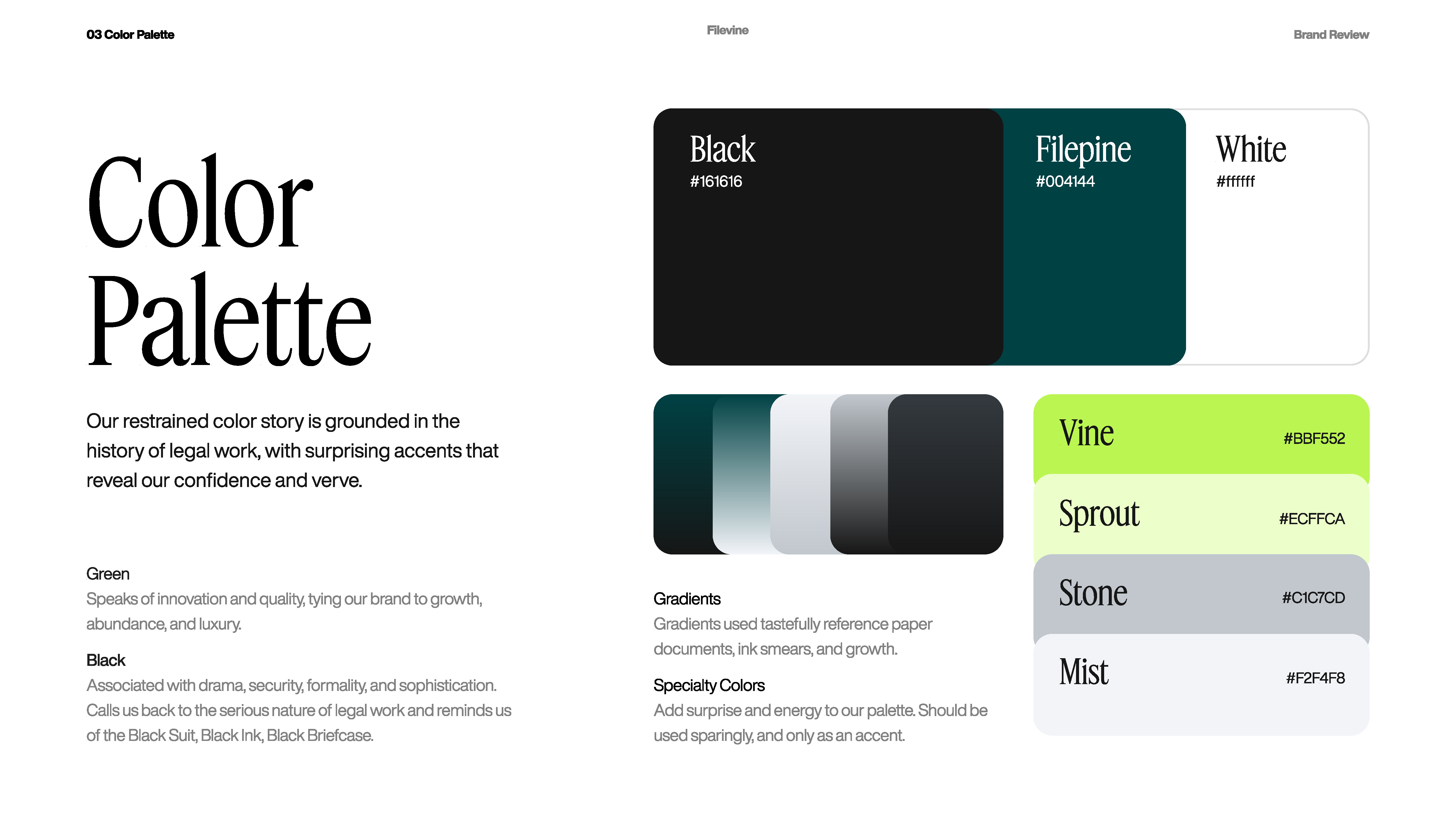 Our team was tasked with creaeting a logo that could be used throughout the FIlevine products. I was in charge of leading the branding meetings and our team developed a meaningful symbol that the founders loved.